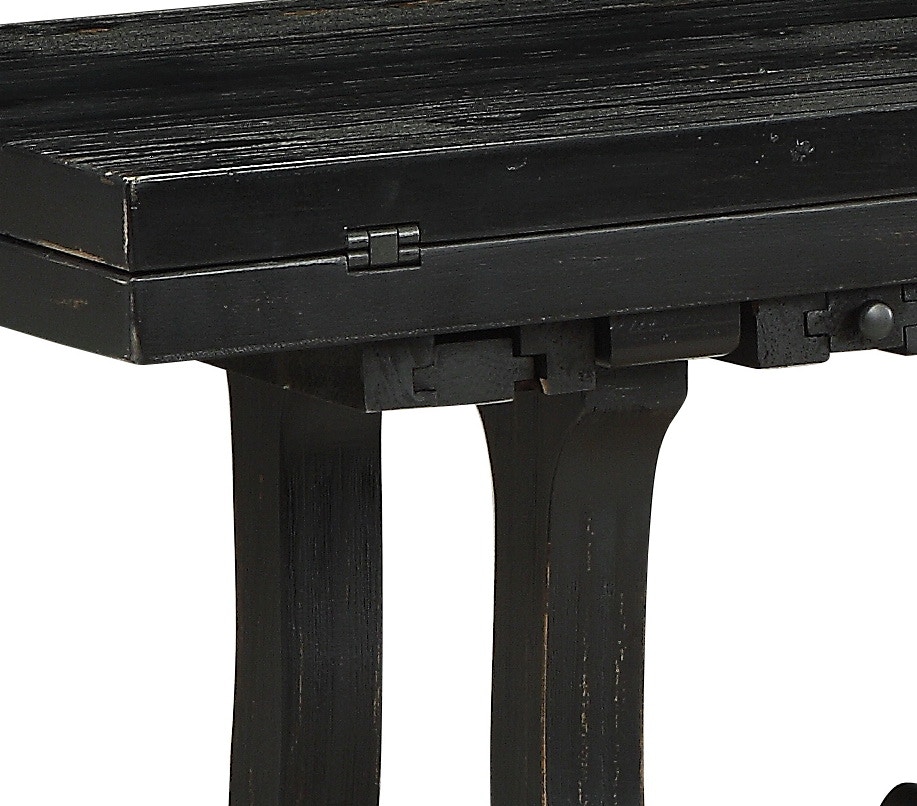Flip Top Console Table. Signature Design by Ashley - Gavelston Console Table Rubbed Black Finish. Stunning in simplicity with its Starshine Metallic finish open circle back panel and lower storage shelf this piece is sure to turn heads.